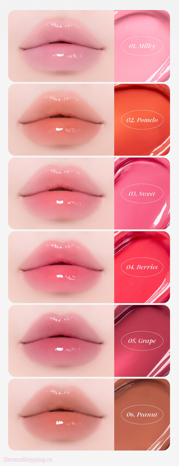 Этот тинт представлен в 6 игривых оттенках и идеально подходит для создания свежего и сочного макияжа каждый день.