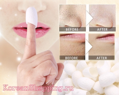 Применение: Замочите коконы шелкопряда в ванночке с теплой водой на 3 минуты, затем оденьте коконы на пальцы и промассируйте кожу лица.