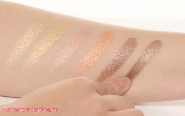 Насыщенные сверкающими пигментами тени эффективно преломляют свет, создавая яркое сияние.